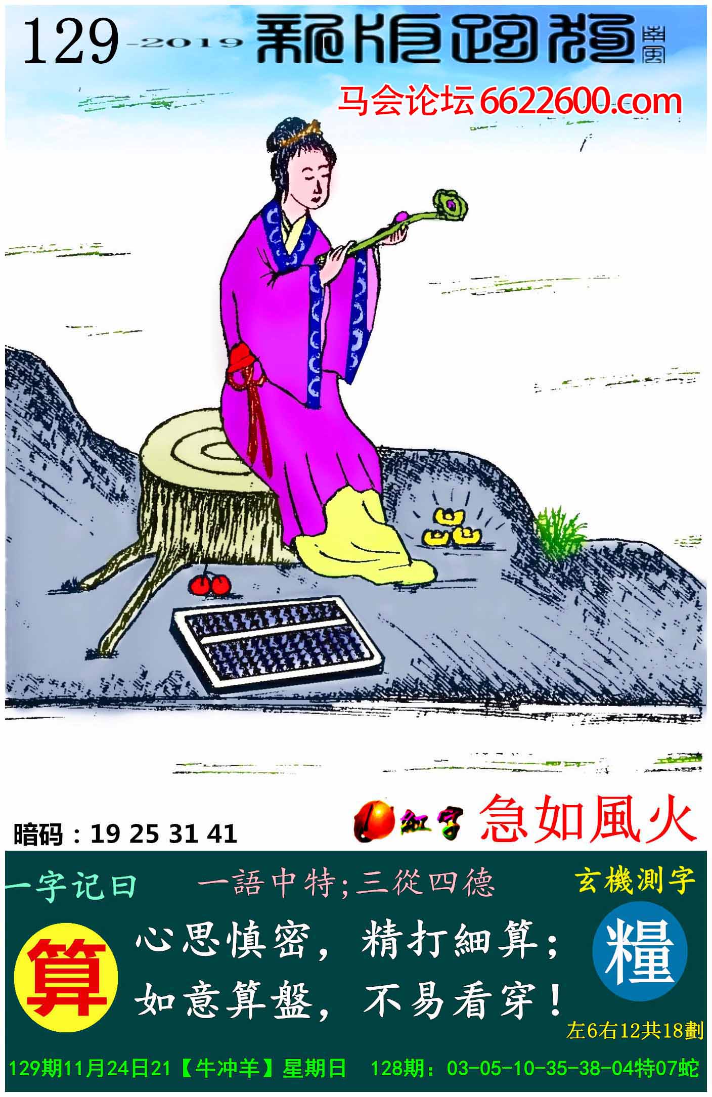 主题 : 129期:新版跑狗一字記之曰【算】玄機測字:《糧》