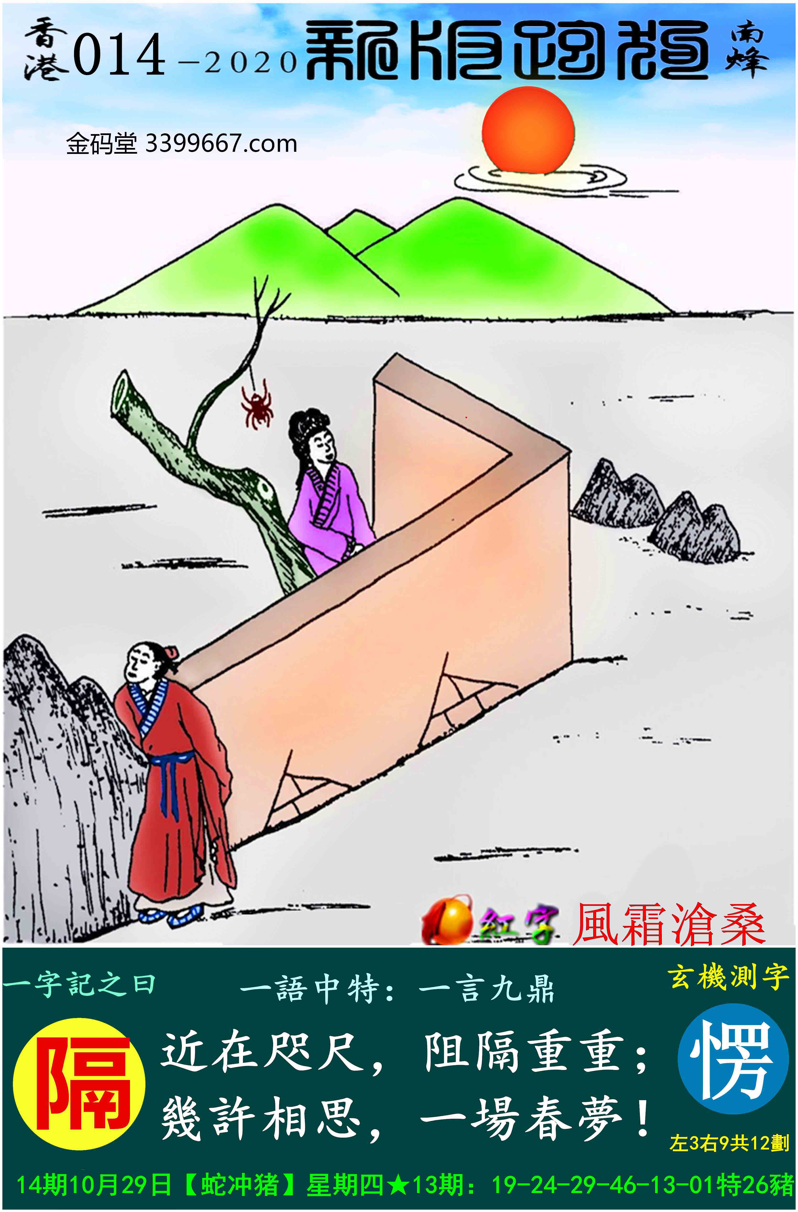 主题 : 014期:新版跑狗一字記之曰【隔】玄機測字:《愣》