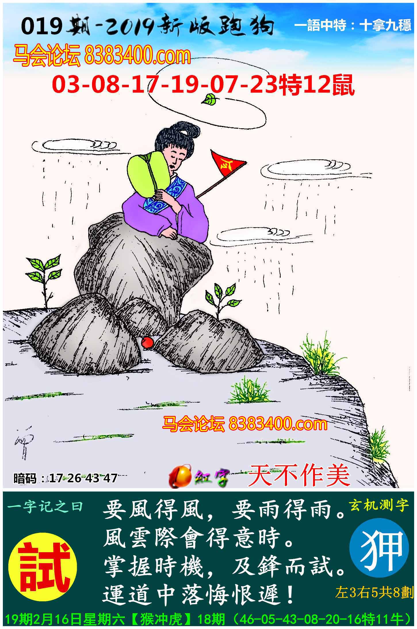 主题 : 055期:新版跑狗一字記之曰【試】玄機測字:《話》