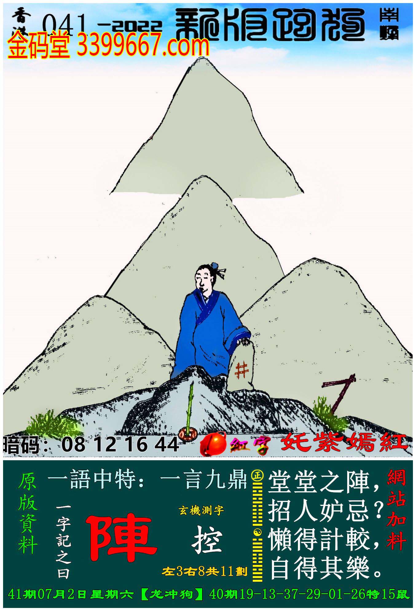 主题 : 041期:新版跑狗一字記之曰【陣】玄機測字:《控》