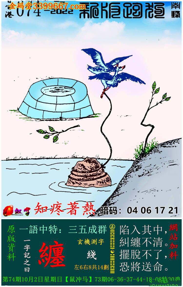 074期新版跑狗一字記之曰:【纏】