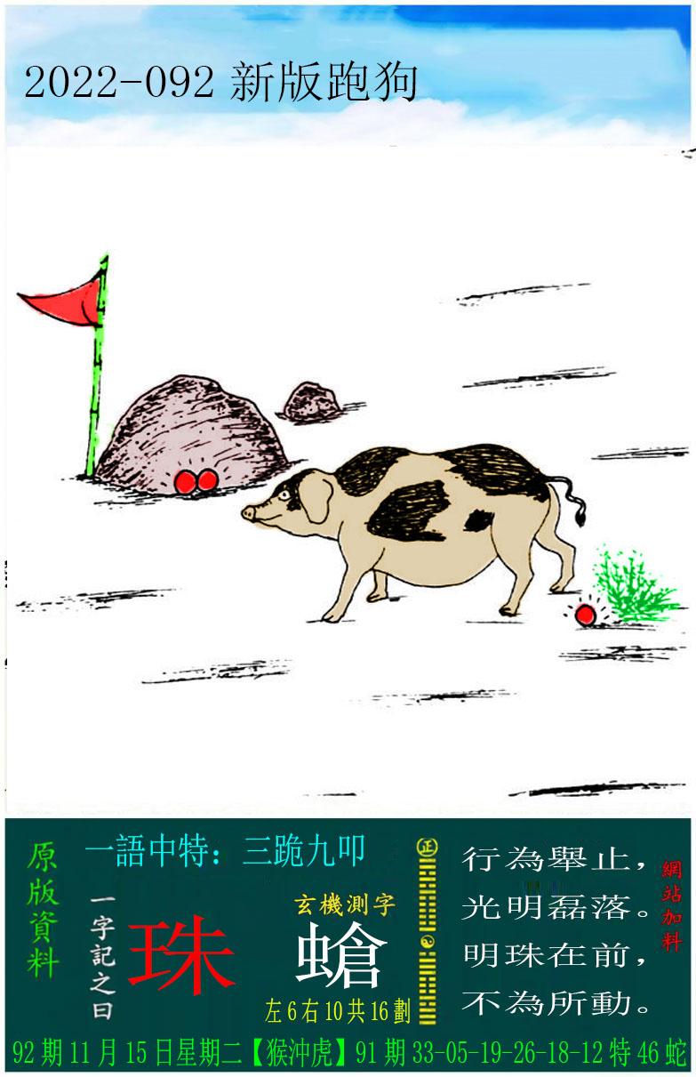 092期新版跑狗一字記之曰:【珠】