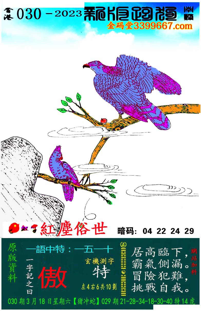 030期新版跑狗一字記之曰:【傲】