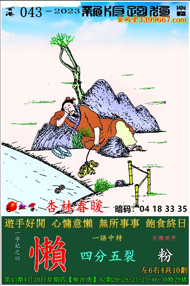 043期:新版跑狗一字記之曰【懶】 玄機測字:《粉》