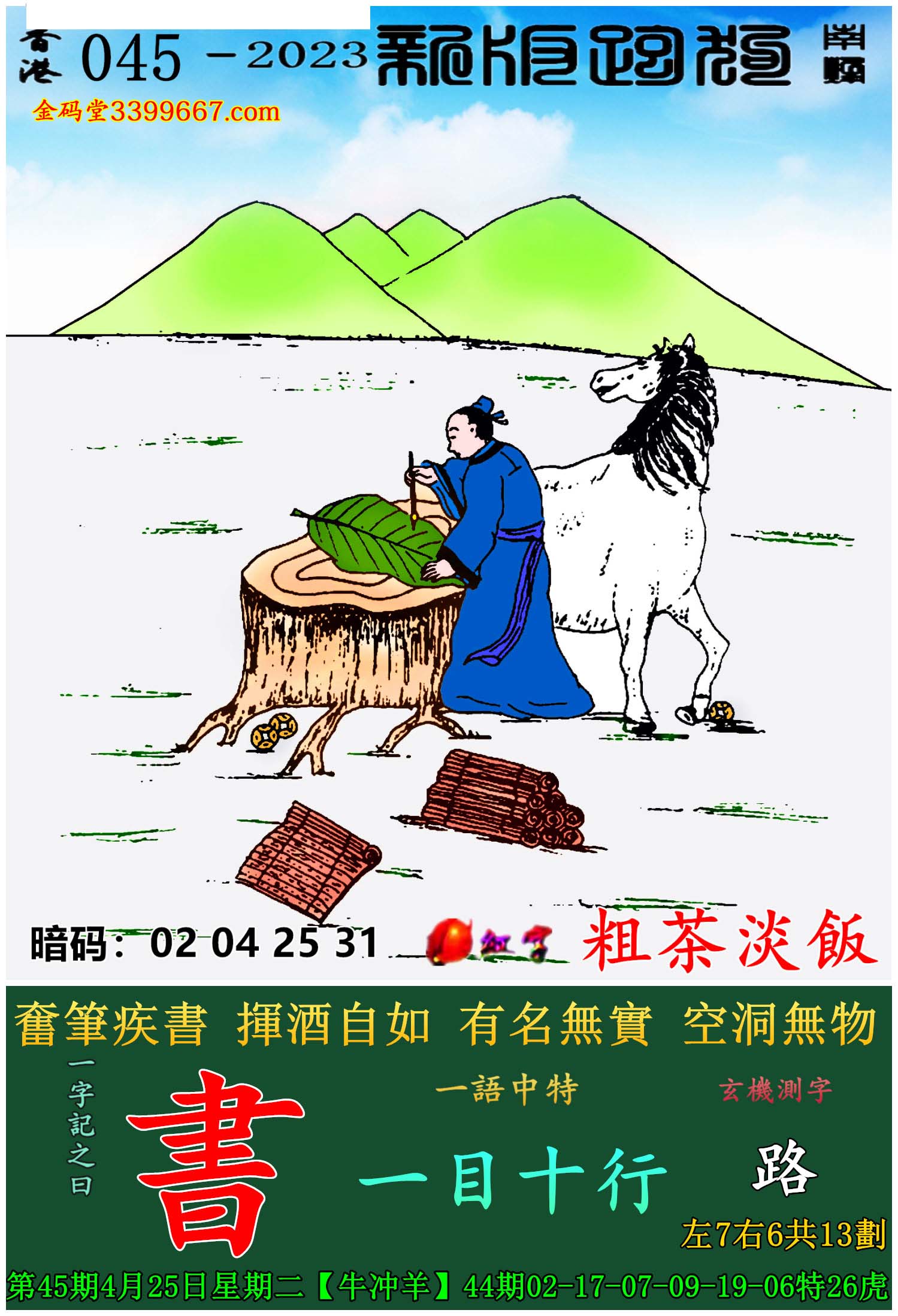 045期:新版跑狗一字記之曰【書】玄機測字:《路》