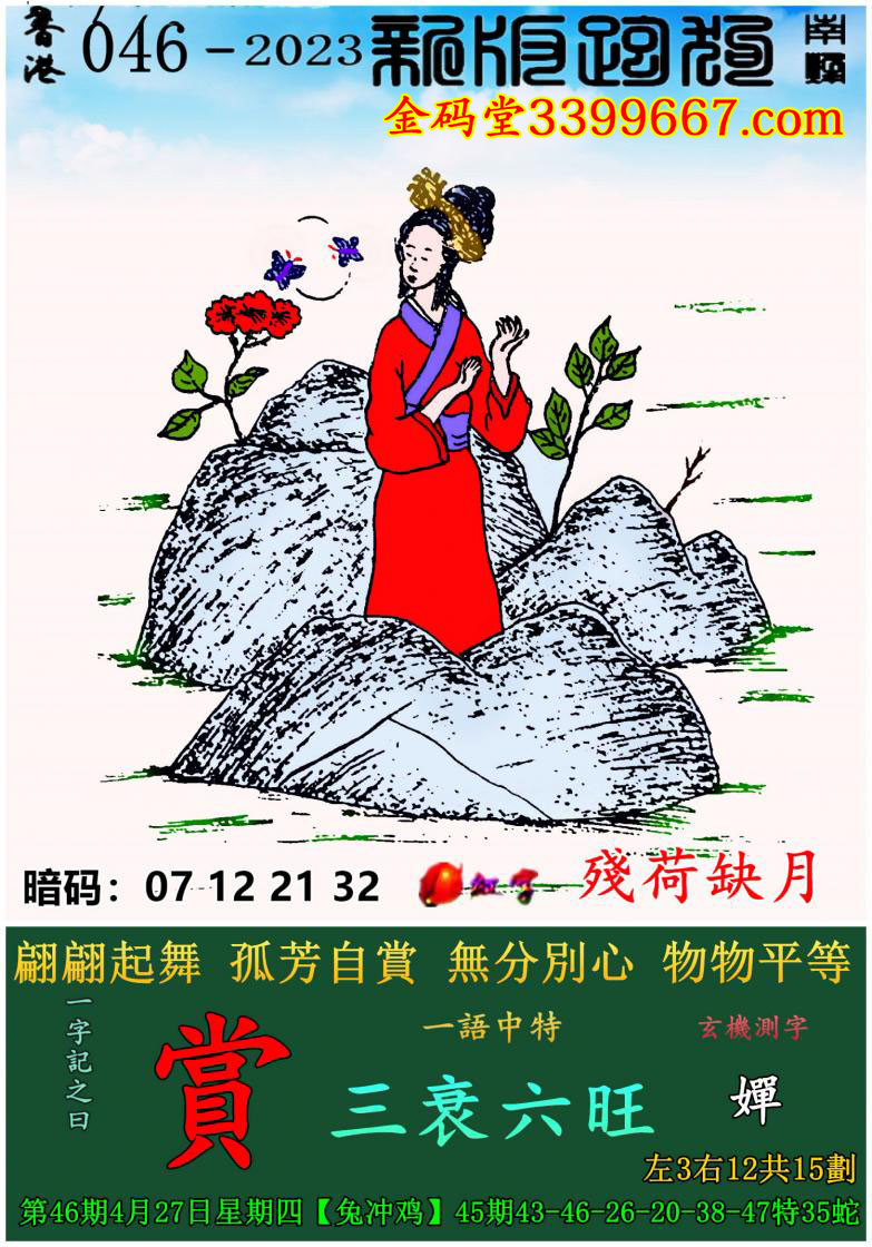 主题 : 046期:新版跑狗一字記之曰【賞】玄機測字:《嬋》