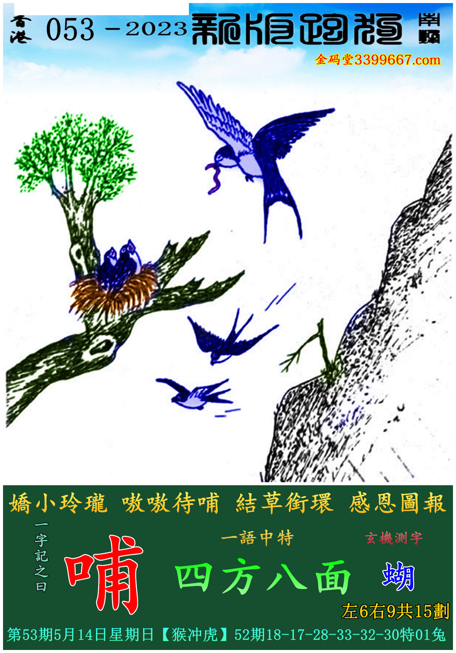 主题 : 053期:新版跑狗一字記之曰【哺】玄機測字:《蝴》
