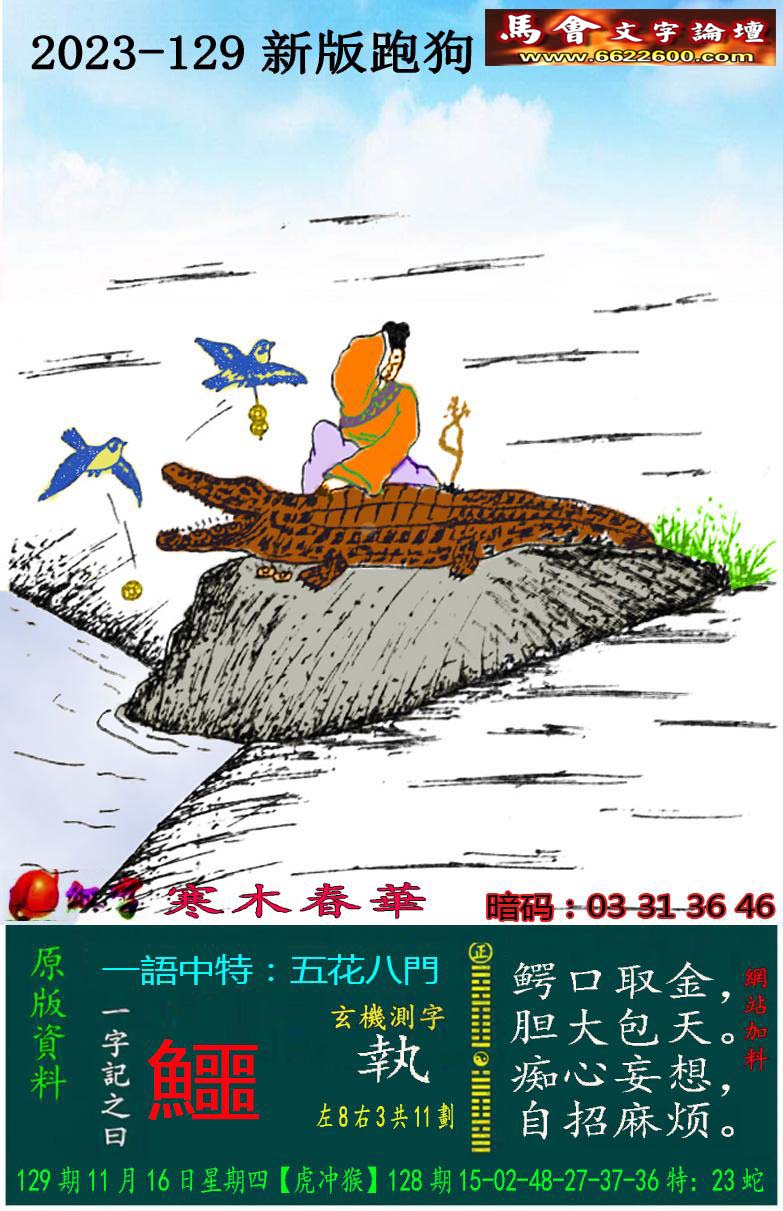 主题 : 129期:新版跑狗一字記之曰【鱷】 玄機測字:《執》