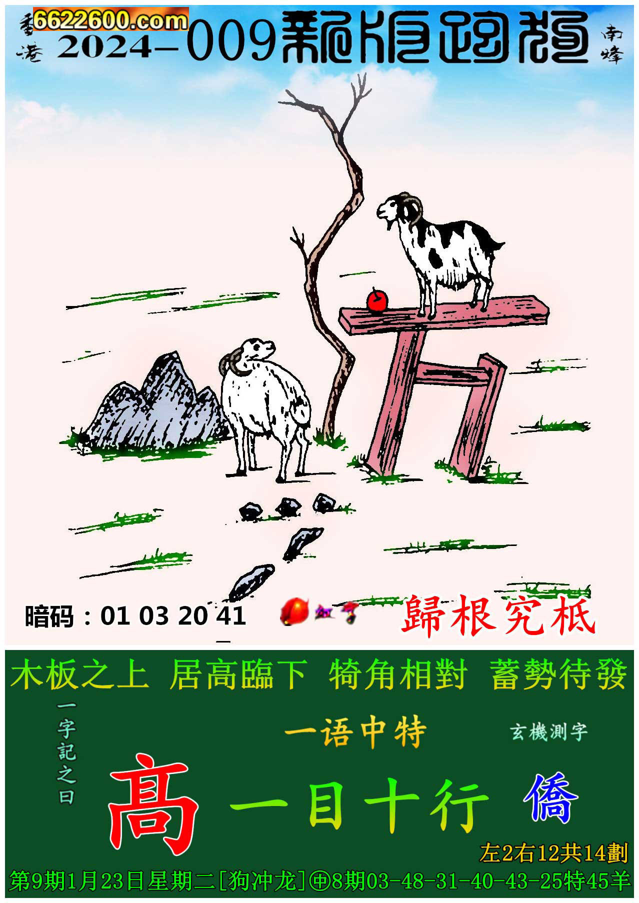 009期新版跑狗一字記之曰:【髙】