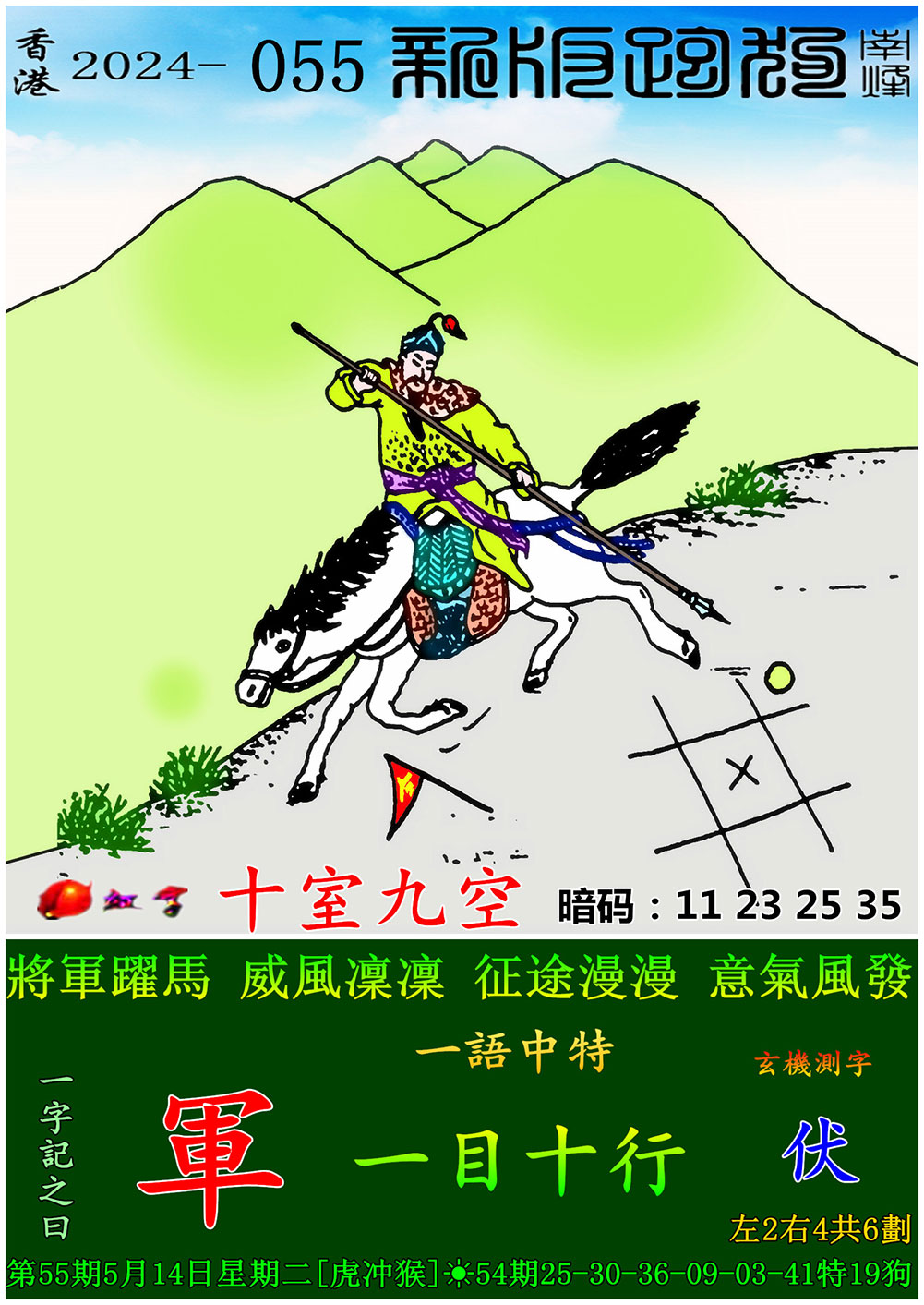 055期跑狗一字記之曰:【軍】 將軍躍馬,威風凜凜。 征途漫漫,
