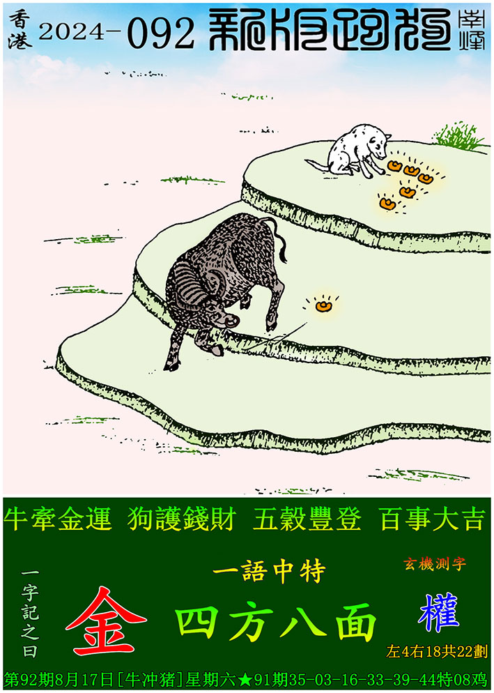 092期新版跑狗一字記之曰:【金】