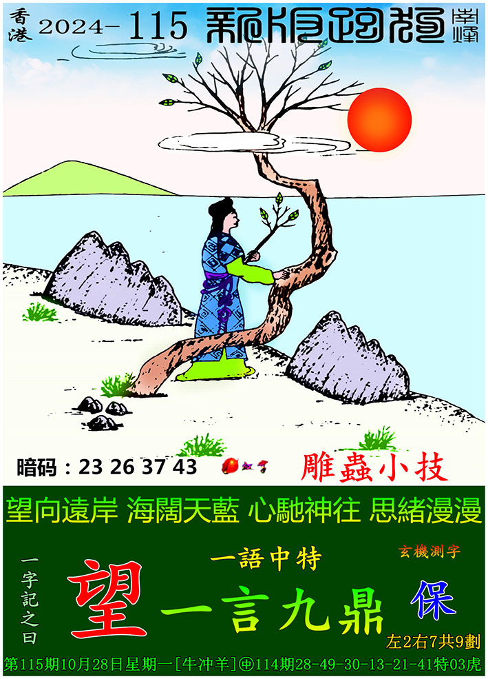 主题 : 115期:新版跑狗一字記之曰【望】 玄機測字:【保】