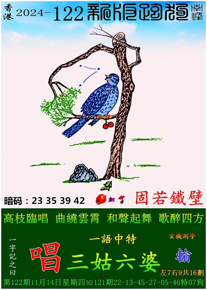 122期:新版跑狗一字記之曰【唱】 玄機測字:【輸】