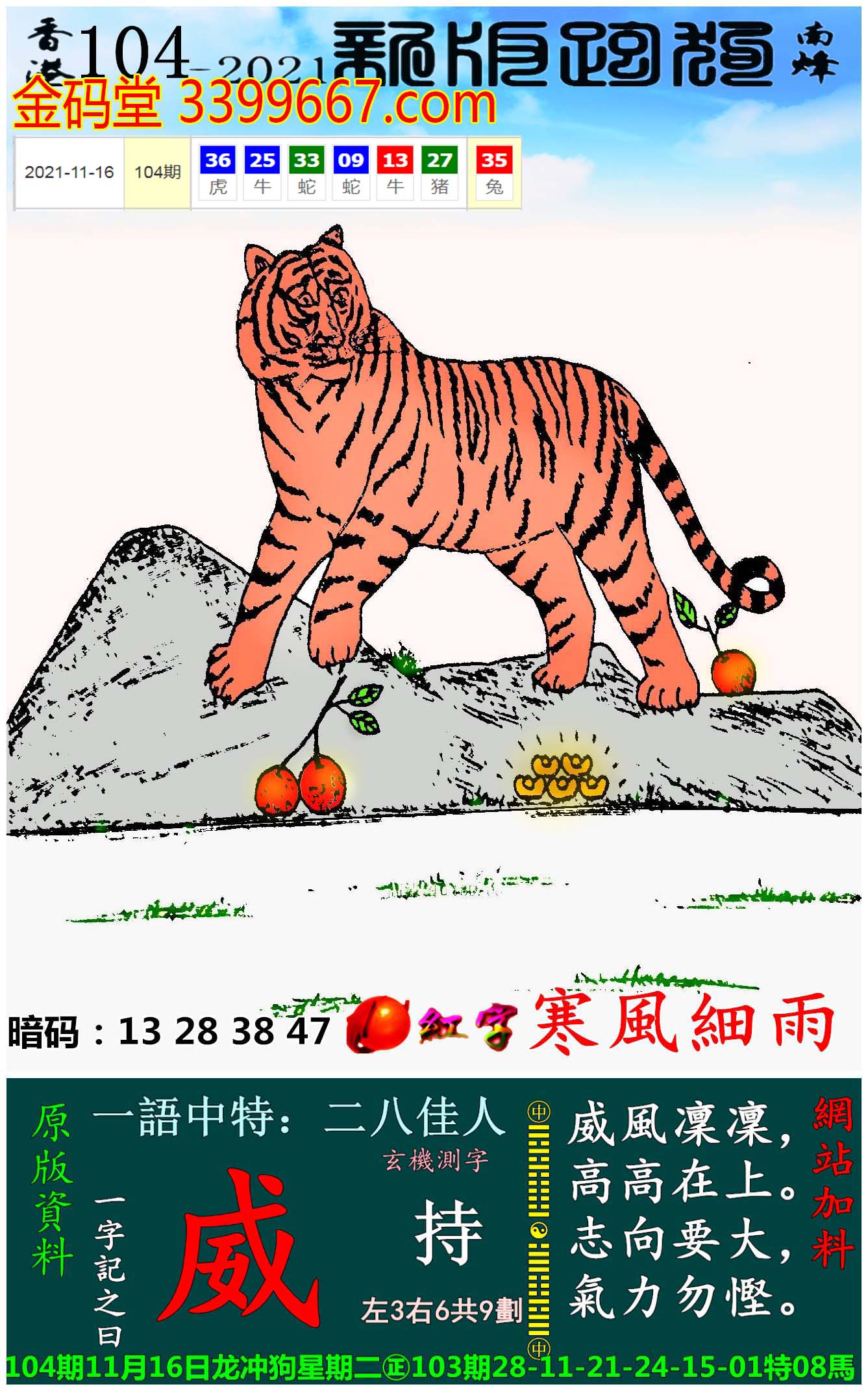 123期:新版跑狗一字記之曰【威】 玄機測字:【搵】