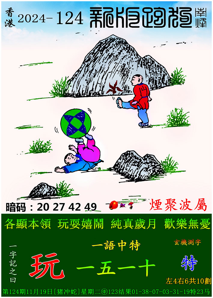 124期:新版跑狗一字記之曰【玩】 玄機測字:【特】