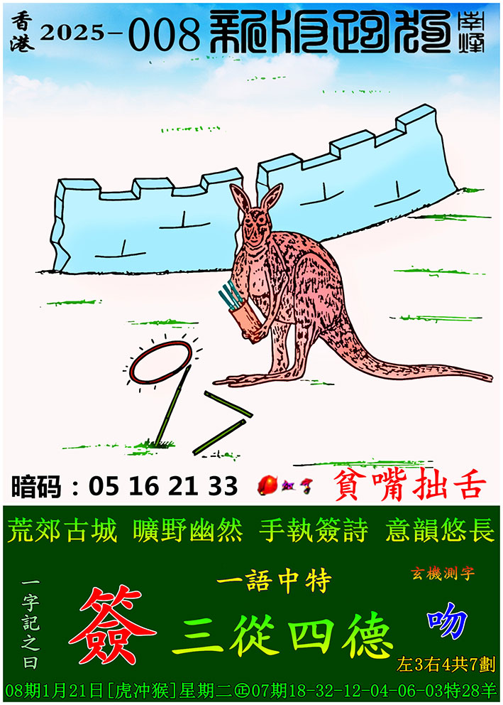 主题 : 008期:新版跑狗一字記之曰【簽】 玄機測字:【吻】