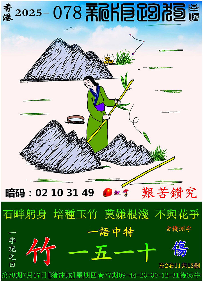 078期:新版跑狗一字記之曰【竹】 玄機測字:【傷】