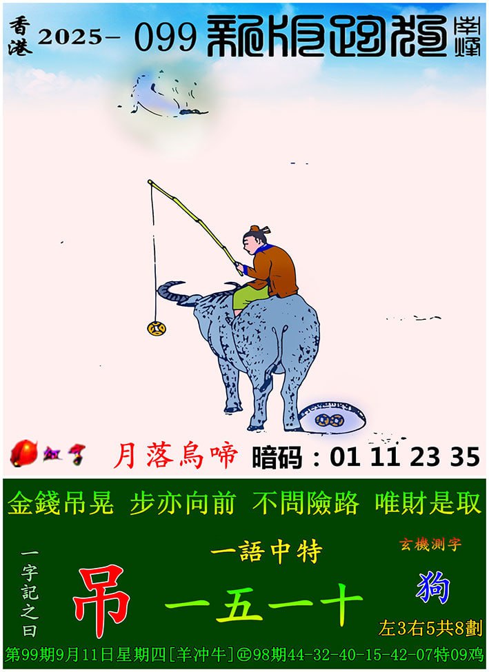 099期新版跑狗一字記之曰:【吊】