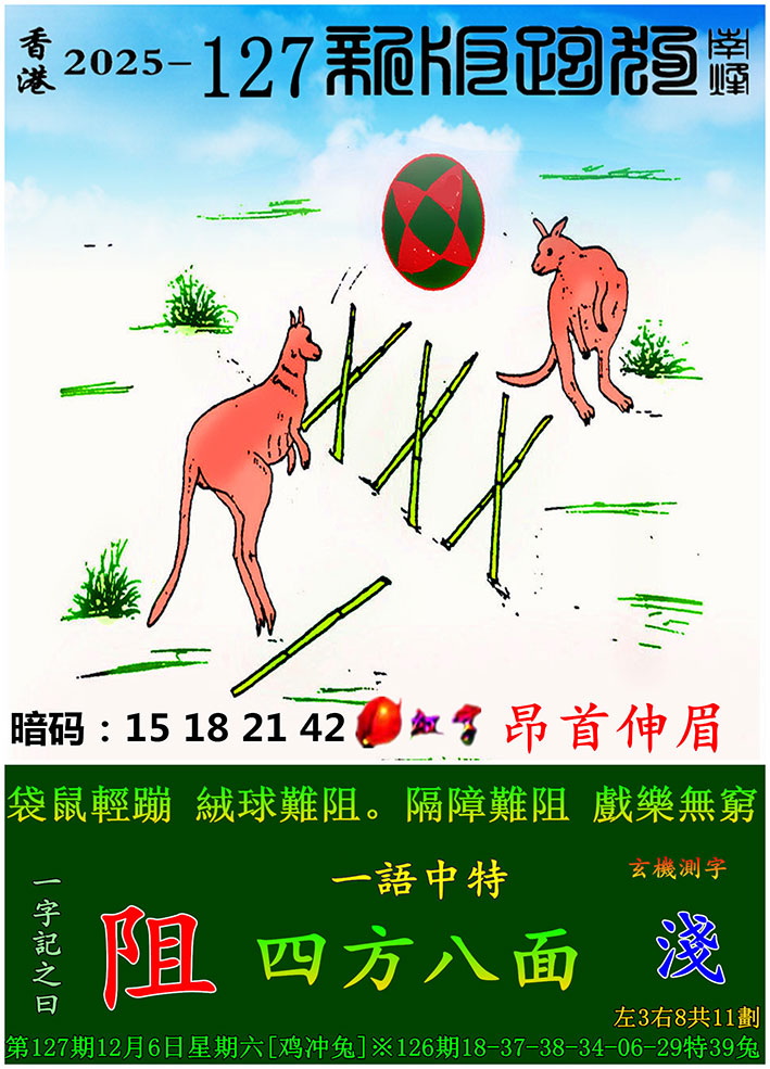 127期:新版跑狗一字記之曰【阻】 玄機測字:【淺】