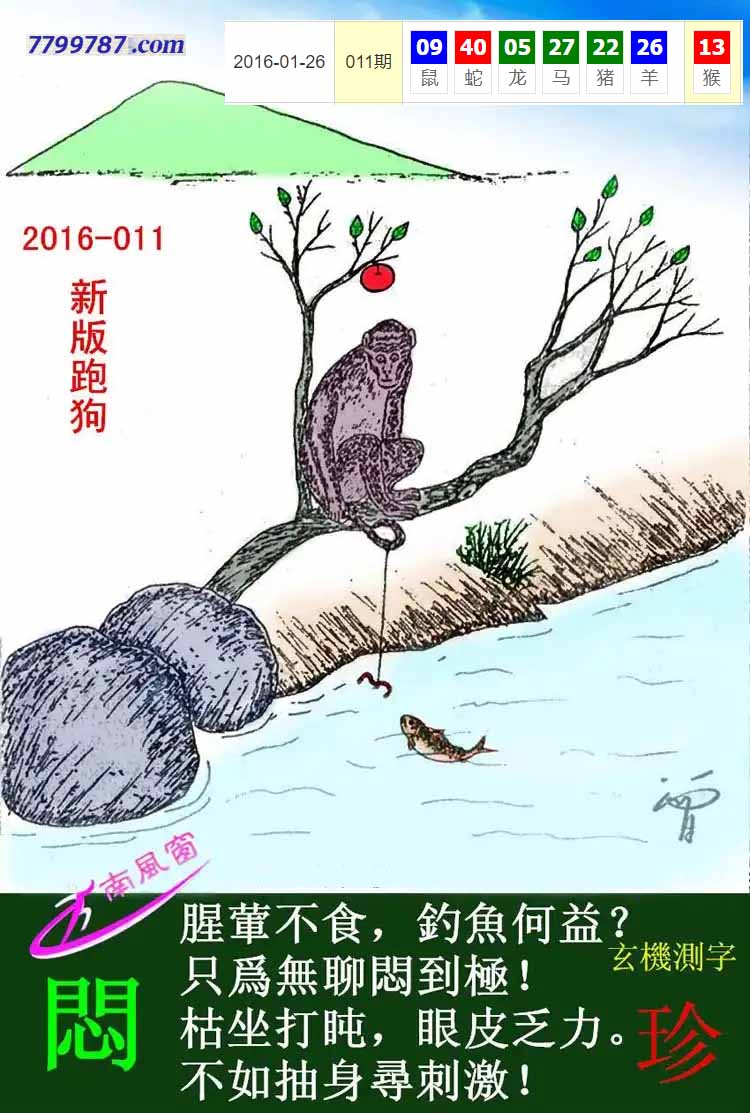主题 : 002期:新版跑狗一字記之曰【釣】 玄機測字:【醒】