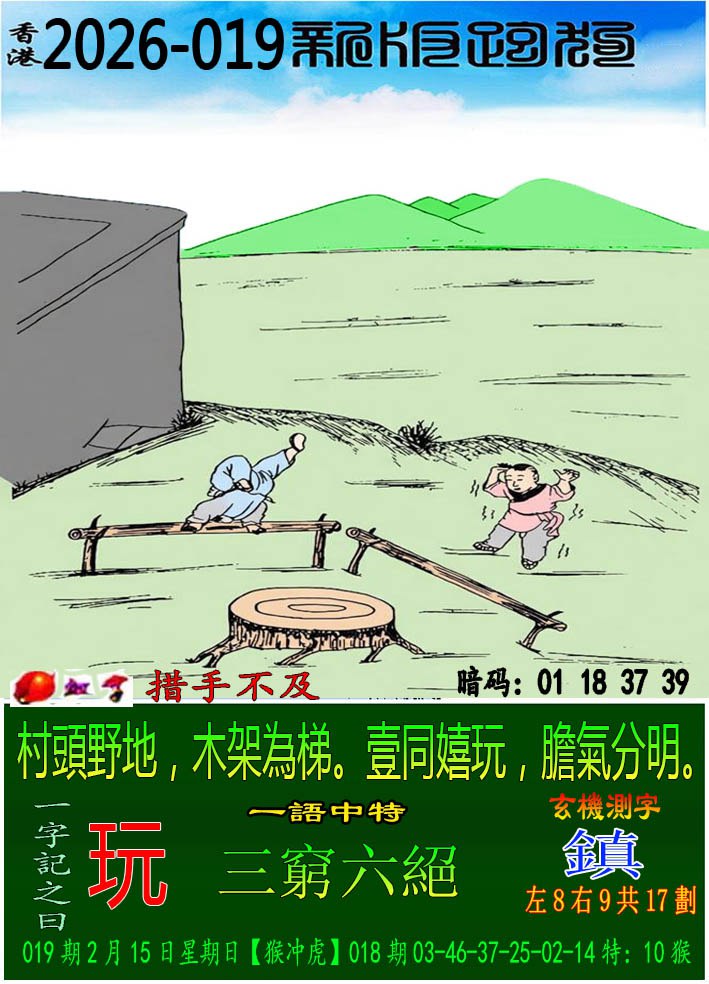019期:新版跑狗一字記之曰【玩】 玄機測字:【鎮】