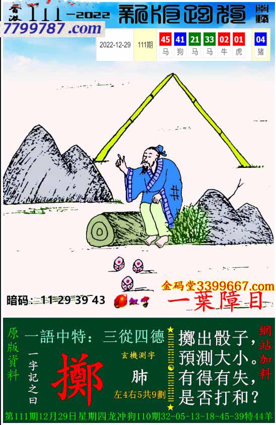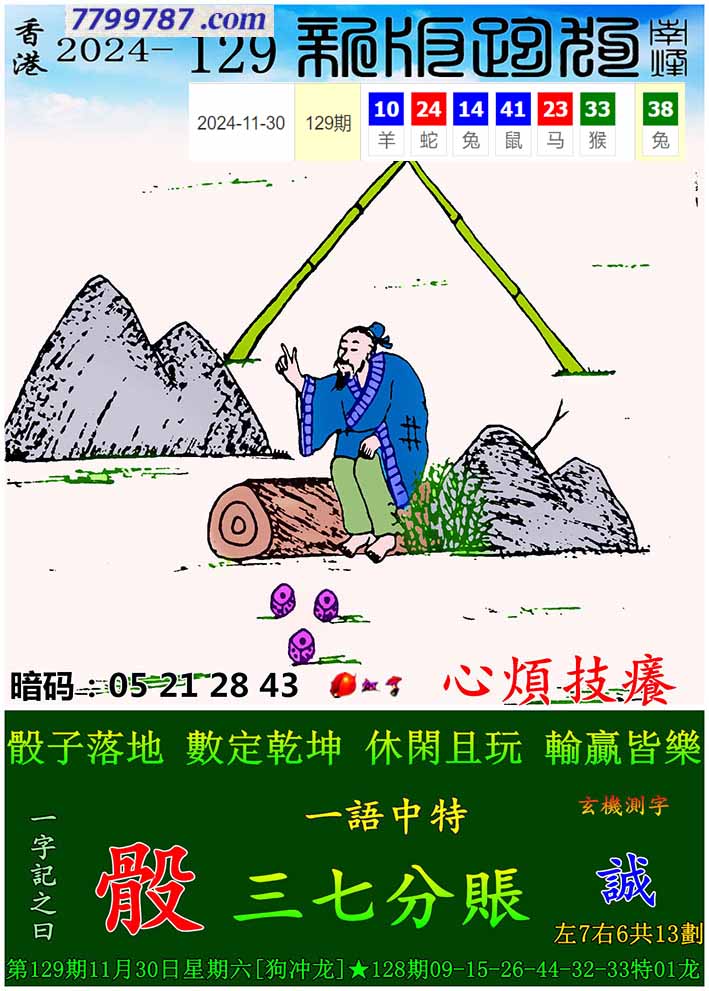 033期:新版跑狗一字記之曰【擲】 玄機測字:【刻】